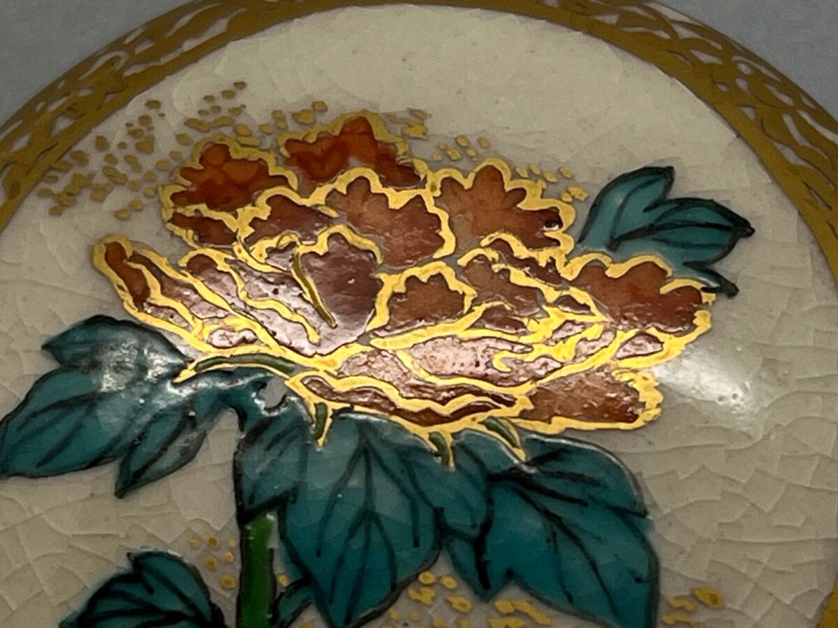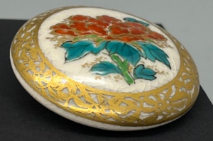 This Satsuma button features a tree peony—a flower long admired in Chinese culture as a symbol of honor, wealth, and nobility.