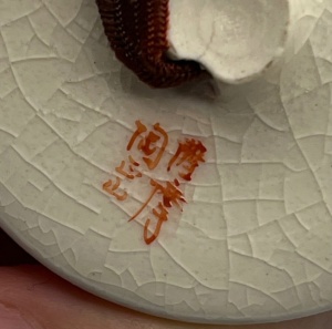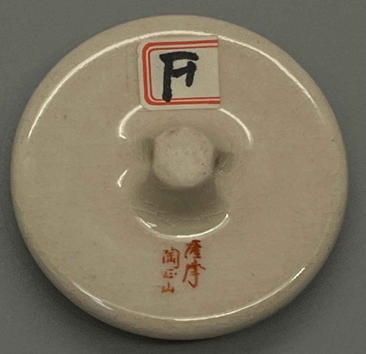 This Satsuma button was created in 1985 by Toshozan (橋本陶正山) of Kagoshima, Japan.