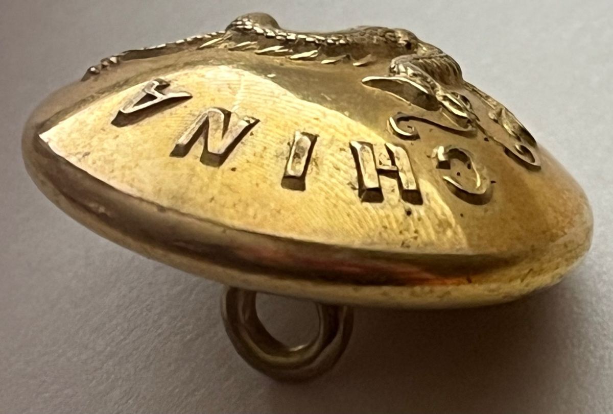 This button belongs to the British Border Regiment. The emblem of the Chinese dragon was awarded to the 55th Regiment in recognition of the Chinese Imperial Standard captured in 1842, which is currently stored at the Kendal Parish Church.