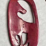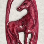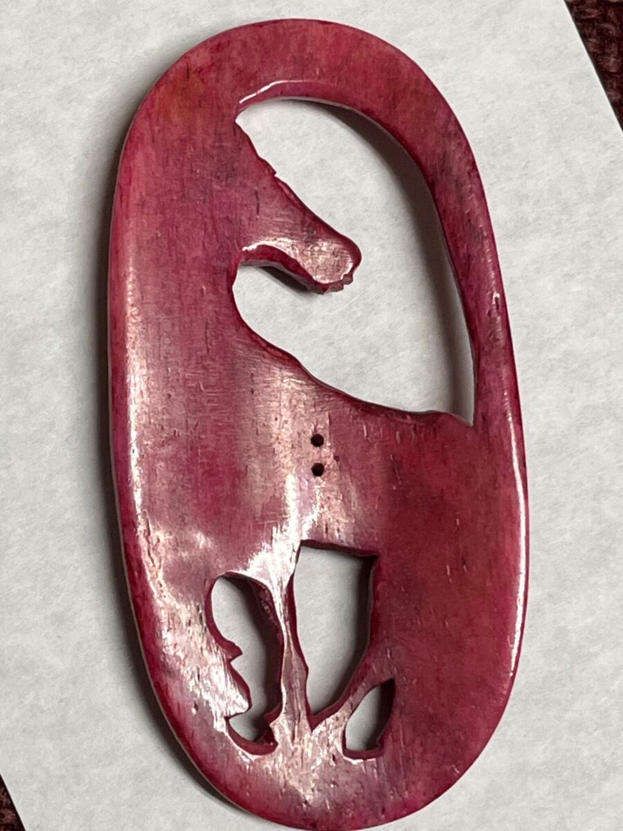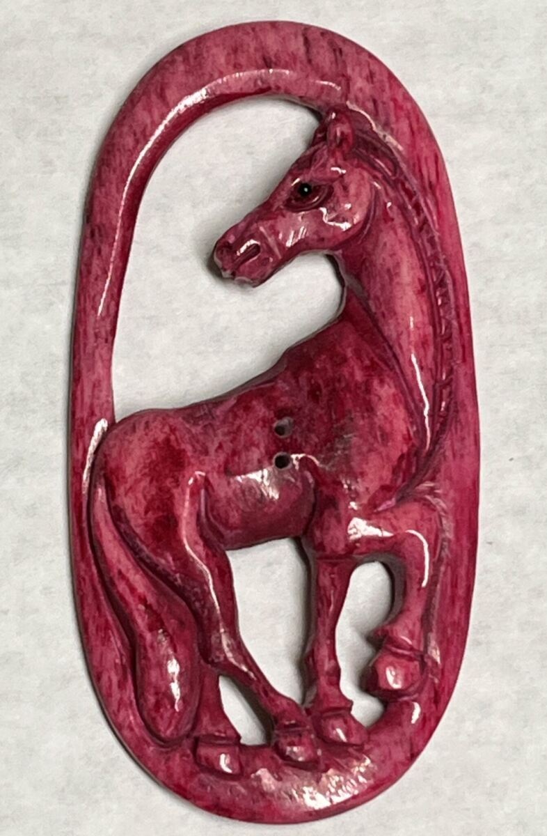 A large carved openwork horse of dyed bone.