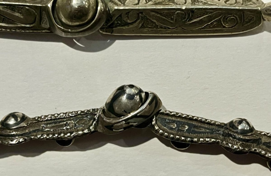 These clasps were found at an antique shop in Turkey in 2001. From the type of niello work, they are more likely from the 19th or early 20th century Caucasus, rather than Turkey itself, according to Jane Perry, Specialist in traditional and regional jewellery from Europe and beyond, a visiting scholar at the Victoria & Albert Museum.